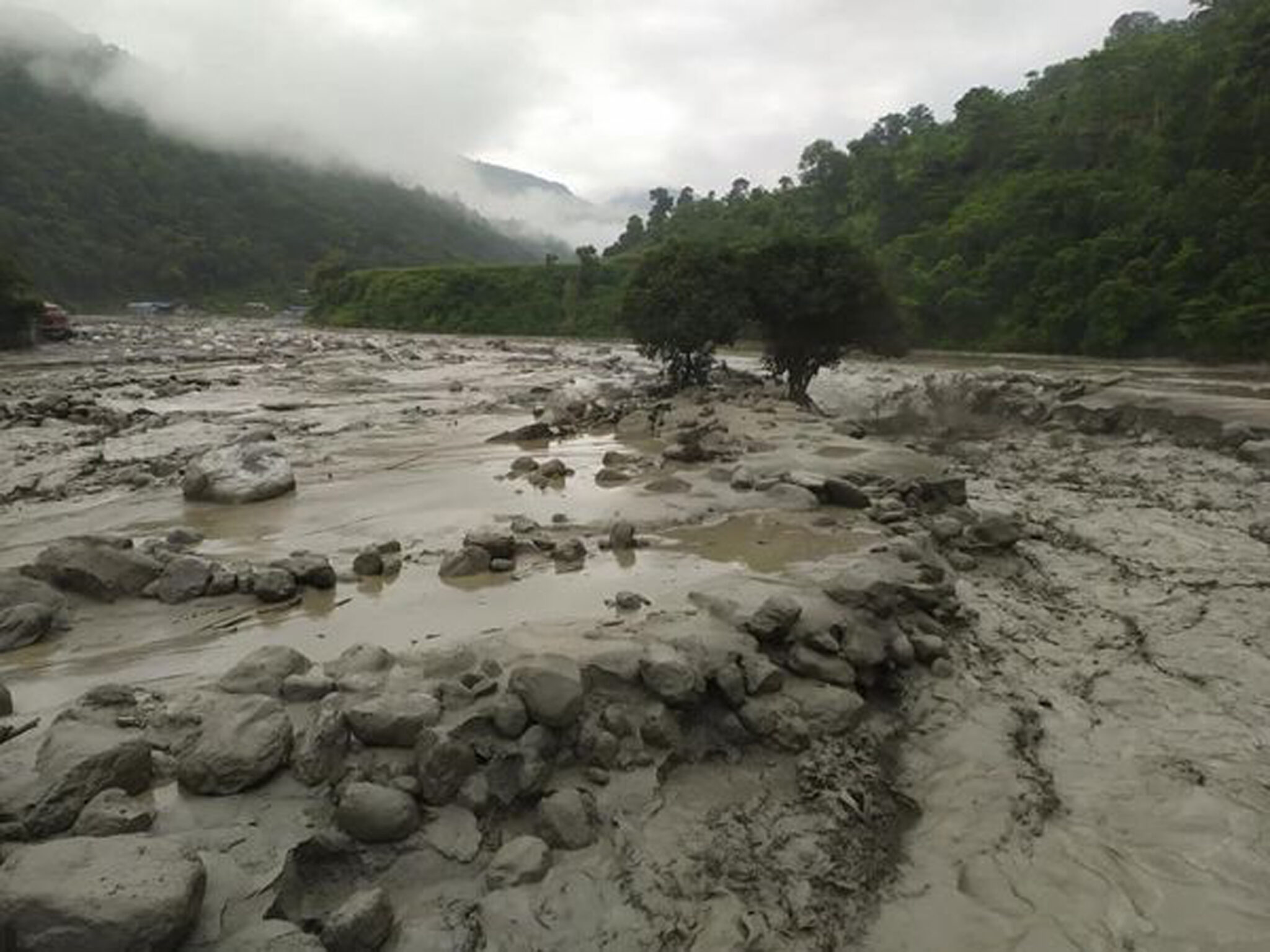 त्यस्तै ग्यालथुममा रहेको झोलुङ्गे पुल पनि वाढीले बगाएको छ । बाढीले धार परिवर्तन गरेर तालामाराङ प्रहरी चौकीको भान्छा पनि बगाएको छ । मेलम्ची बजारदेखिमाथि पुल बाँकी नरहेको हेलम्बु गाउँपालिकाका अध्यक्ष निमा ग्यालजेन शेर्पाले जानकारी दिइन् । खोलामा लेदोसहितको बाढी आएको र बाढी घट्ने, बढ्ने भइरहेको उनको भनाई छ । हेलम्बु राजमार्गका विभिन्न स्थानमा पहिरो जाँदा मेलम्चीबाट हेलम्बु सवारीसाधन जान नसकेको मेलम्ची नगर प्रमुख डम्बर अर्यालले जानकारी दिए ।