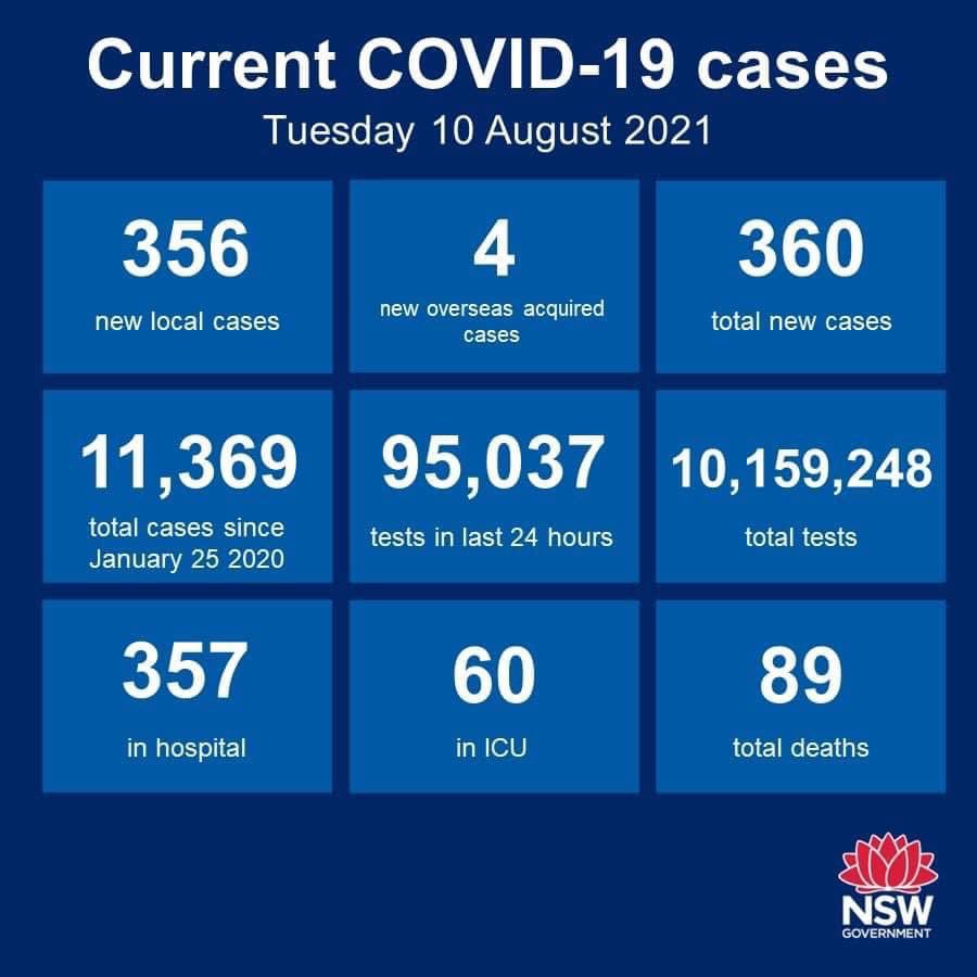 ३५७ जना अस्पतालमा उपचाररत रहेका छन् । ६० जना आईसीयूमा छन् । निधन हुनेको संख्या ८९ पुगेको छ । वितेको २४ घण्टामा मात्रै सिड्नीमा ३ जनाको मृत्यु भएको छ ।