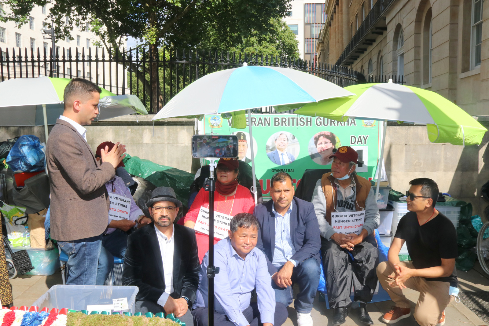 १० डाउनिङ स्ट्रिटस्थित बेलायती प्रधानमन्त्री निवासबाहिर आमरण अनसनमा बसिरहेका गोर्खा सत्याग्रह संघर्ष समितिका अभियन्ताहरुलाई भेटेर पत्रकार महासंघ यूके शाखाका प्रतिनिधिहरुले ऐक्यवद्धता जनाएका हुन् ।
