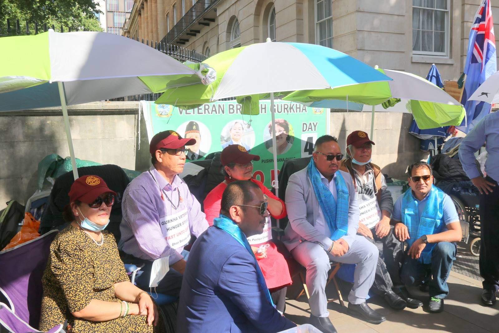 ब्रिटिश आर्मी सरह नै भूतपूर्व गोर्खा सैनिकहरुले पनि सुविधा पाउनुपर्ने माग गर्दै गत शनिबार देखि ज्ञानराज राई, धन गुरुङ र पुष्प राना घले ब्रिटिश प्रधानमन्त्रीको कार्यालय नजिकै आमरण अनसन गरिरहेका छन् ।