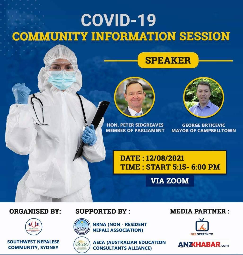 कोभिड १९ इन्फरमेशन सेसन नाम दिइएको उक्त कार्यक्रममा सरकार तथा अष्ट्रेलियामा रहेका नेपालीसहित विभिन्न समुदायका पदाधिकारी गरी करिब ५० जना सहभागि रहेको अध्यक्ष सापकोटाले बताए ।