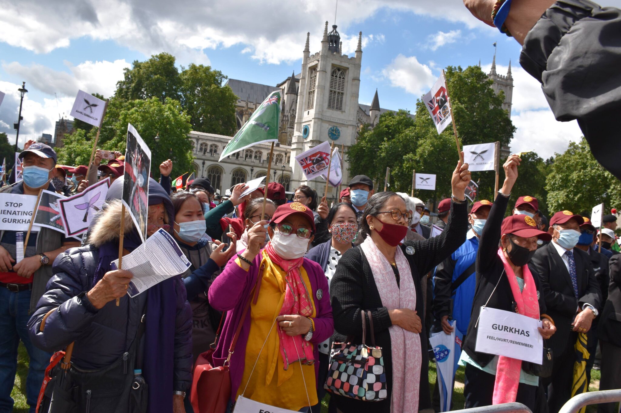 भोक हड्तालमा रहेका ज्ञानराज राई, धन गुरुङ र पुष्पा घलेको समर्थनमा ऐक्यवद्धता जनाउन र सरकारको दबाब बढाउन भुपु गोर्खालीहरुले प्रदर्शन गरेका हुन् । समानताको माग राख्दै आएका भूतपुर्व गोर्खा सैनिकहरुले बुधवार बेलायतको संसदहरुको ध्यानकर्षण र दवाव दिने उद्देश्यले संसद भवन अगाडी प्रर्दशन गरेको हो ।
