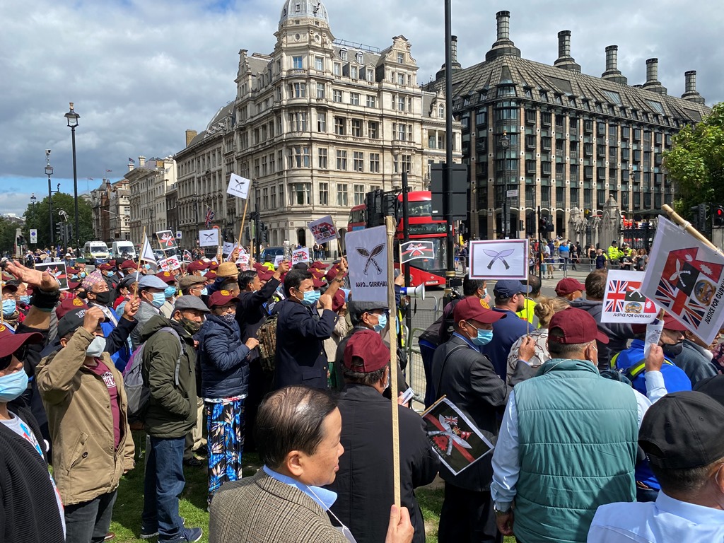 लण्डन । १३ दिनदेखि भोक हड्तालमा रहेका भूतपूर्व ब्रिटिश गोर्खा सैनिकहरुको समर्थनमा बेलायतको लण्डनस्थित संसद भवन अगाडी विशाल प्रर्दशन भएको छ ।