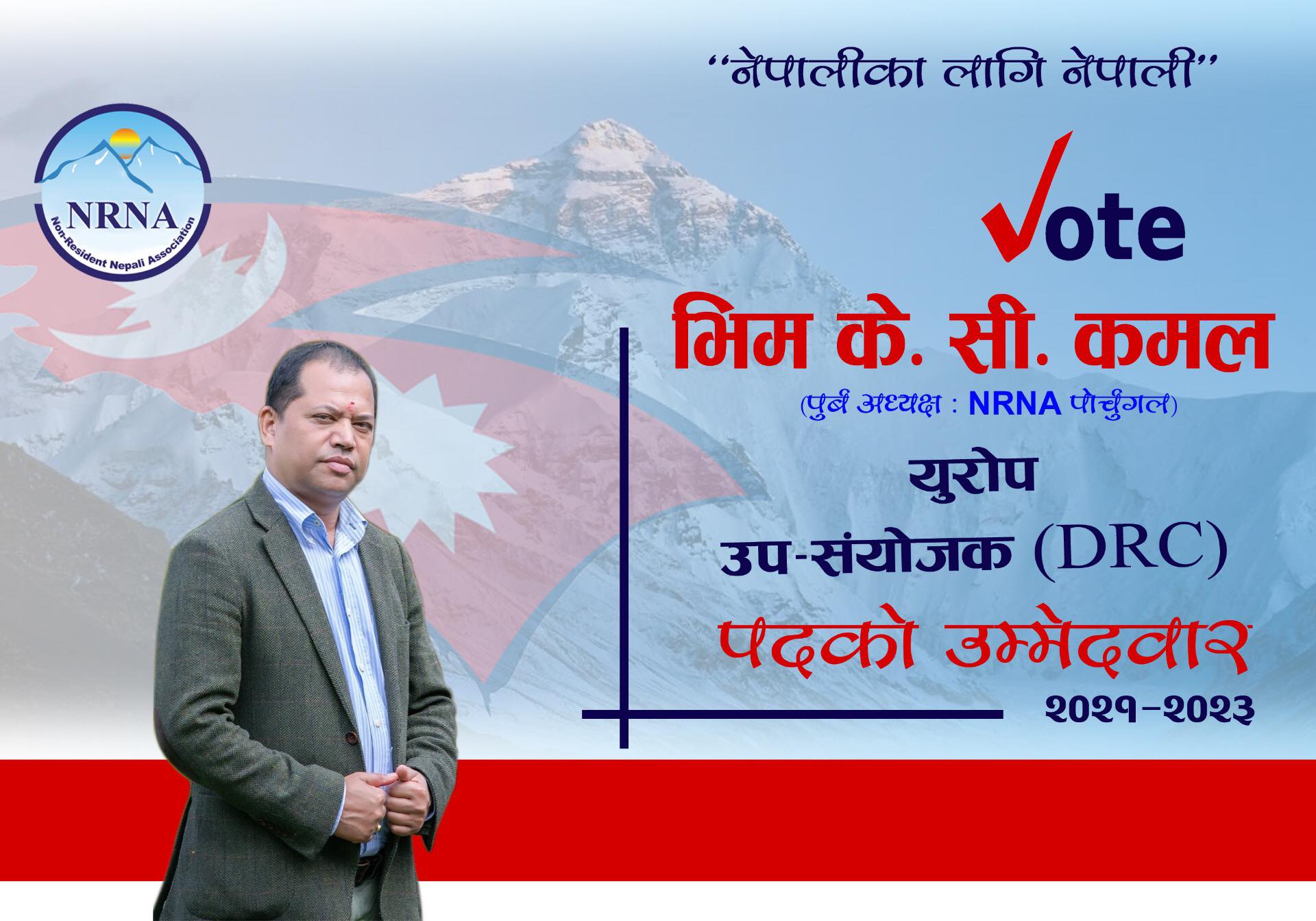 लण्डन । गैरआवासीय नेपाली संघ (एनआरएनए)को यहि अक्टोबर २३ देखि २५ मा हुने अन्तरािष्ट्रय समन्वय समिति (आईसीसी)को निर्वाचनमा पोर्चुगलबाट भिम केसी (कमल)ले युरोप उपसंयोजकमा उम्मेदवारी घोषणा गरेका छन् ।