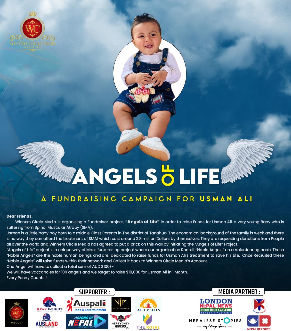 तक्दीर अधिकारी, सिड्नी । सर्कल मिडियाले स्पाइनल मस्कुलर एट्रोफी नामक जटिल रोगबाट पीडित भएका बालक उस्मान अलिको लागि आर्थिक सहयोग संकलन अभियान शुरू गरेको छ ।