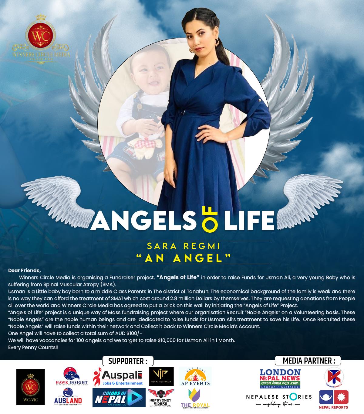 बाबु वैदेशिक रोजगारीबाट फर्किएका छन् भने आमा घरकै काममा व्यस्त हुने उनको परिवारले उपचार खर्च धान्नै नसक्ने समस्याको कारण छोरा ग्रसित भएपछि उनको परिवारले आर्थिक सहयोगको अपिल गरेका छन् ।सोही सहयोगात्मक अभियानमा विनर सर्कलले ‘एन्जल अफ लाइफ’ प्रोजेक्ट शुरू गर्दै सहयोग जुटाउन थालेको हो ।