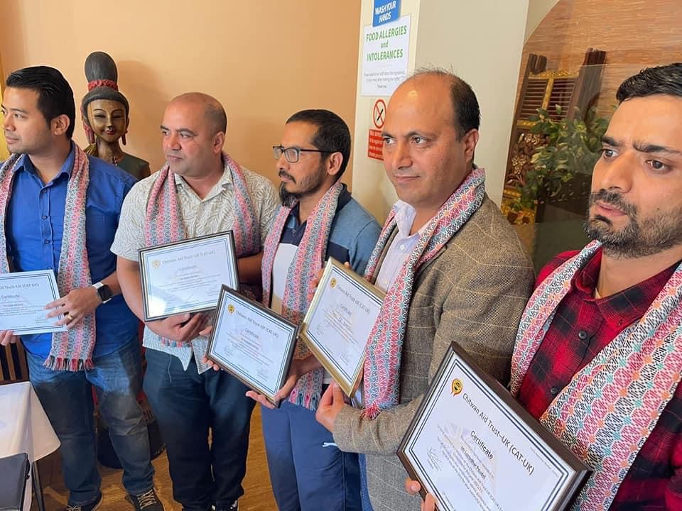 लण्डन । चितवन एड ट्रष्ट (क्याट युके)ले कार्यसमितिमा थप पाँच जना सदस्यहरुलाई मनोनयन गरेको छ । १२ सेप्टेम्बर २०२१ मा बसेको कार्यसमितीको बैठकले विकास सापकोटा, किशोर श्रेष्ठ, दिपेन्द्र अधिकारी, फुलप्रसाद कंडेल र लिलाधर पौडेललाई कार्यसमितिमा चयन गरिएको हो ।