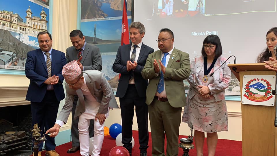 बेलायतका लागि नेपाली राजदूत लोक दर्शन रेग्मी तथा स्वास्थ्य राज्यमन्त्री उमेश श्रेष्ठले नेपालबाट संयुक्तरुपमा उद्घाटन गरे।