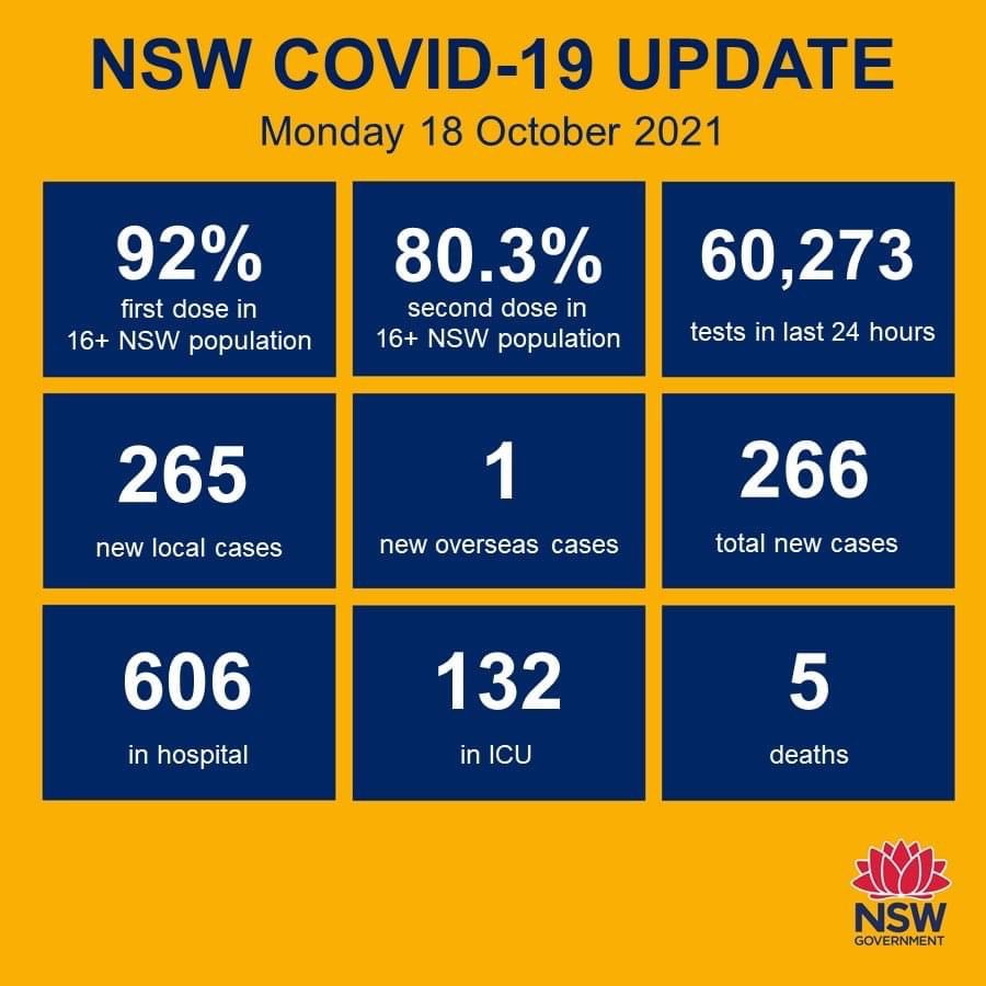 हालसम्म न्यू साउथ वेल्समा ९२ प्रतिशत बढीले कोभिड विरुद्धको खोपको पहिलो मात्रा र ८० प्रतिशत बढीले दोस्रो मात्रा पाएका छन् ।