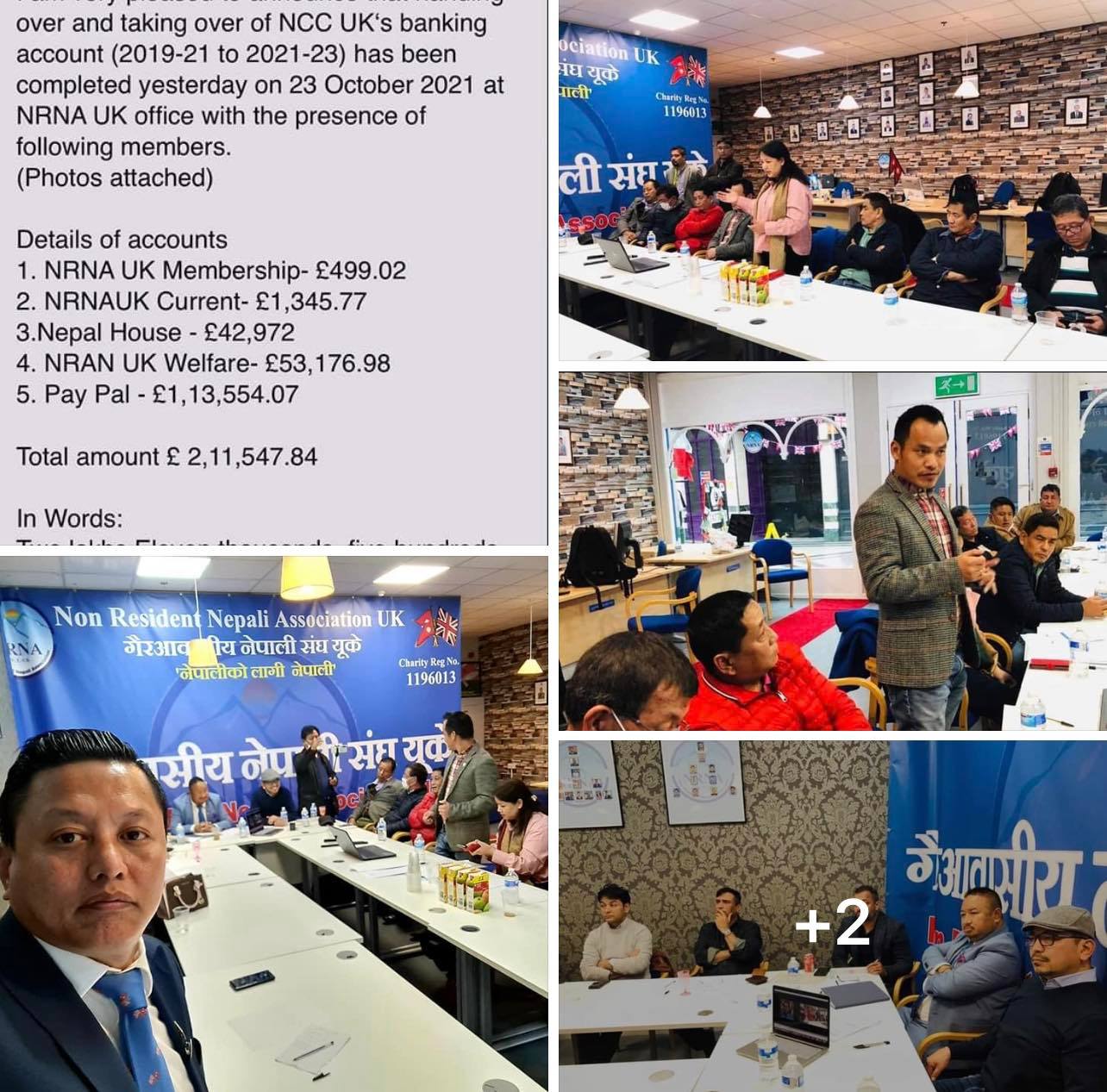 निवर्तमान कार्य समितिको निर्वाचन ताका भएको भनिएको अपारदर्शी खर्चका सम्बन्धमा विवाद भै बेलायतको अदालतमा मुद्दा चलिरहेको अवस्थामा उक्त समयावधिको कुनै पनि कागजात र निवर्तमान कार्य समितिको कार्यकालमा गरेको भनिएका खर्चहरु सम्वन्धि कुनै पनि विल भरपाई हालसम्म हस्तान्तरण नभएको पनि गैर आवासीय नेपाली संघ युकेले जनाएको छ ।