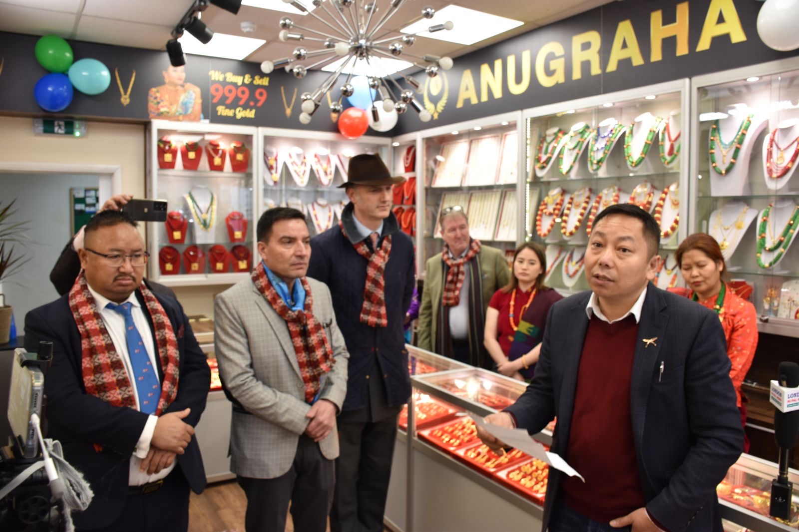 शुक्रबार स्थानिय संसाद समेत रहेका बेलायती भेट्रान लियो डोकेर्टी, अल्डरसटस्थित स्थानीय काउन्सिलर जीव बेल्वासे, रसमोर बरो काउन्सिल लिडर डेभिड क्लिफोर्ड, एनआरएनए यूके अध्यक्ष प्रेम गाहामगर लगायत स्थानीय अन्य काउन्सिलर हरुको उपस्थितिमा संयुक्त रुपमा रिवन काटेर एक कार्यक्रमका बीच अनुग्रह ज्वेलर्सको उद्घाटन गरेका हुन् ।