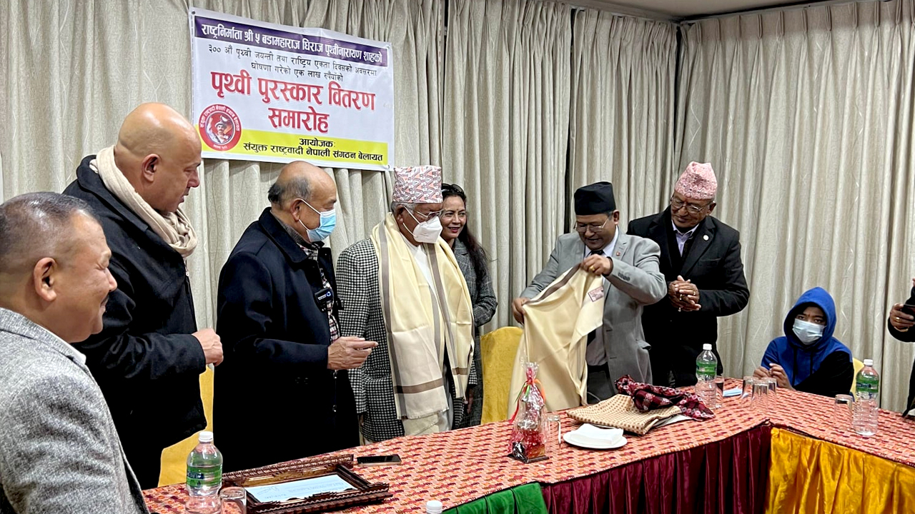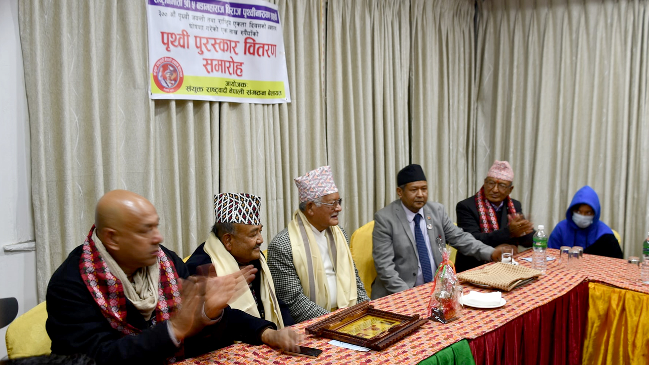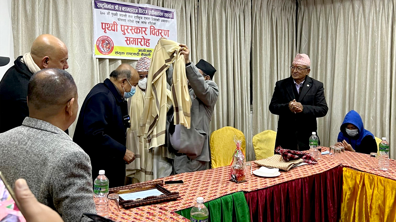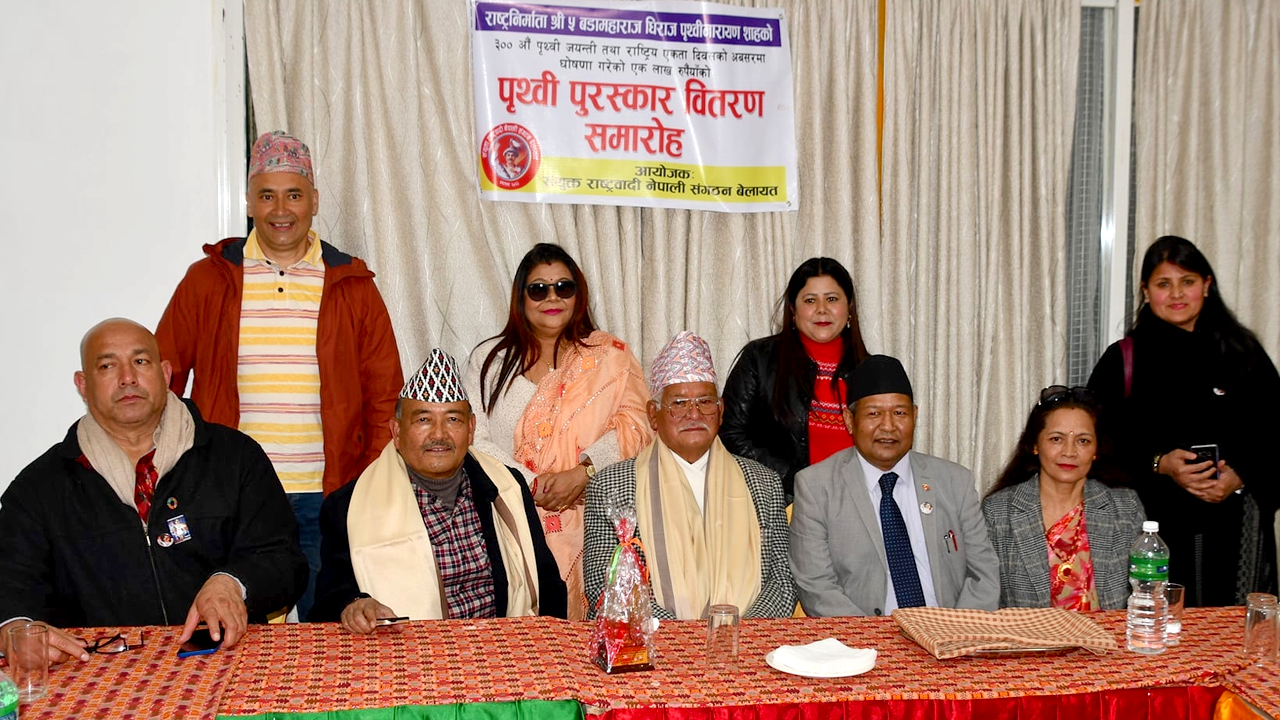 लन्डन। बेलायतमा राष्ट्रवादी नेपाली संगठनले श्री ५ पृथ्वीनारायण शाहको ३०० औं जन्म जयन्ती तथा राष्ट्रिय एकता दिवसको अवसरमा घोषणा गरेको ‘पृथ्वी पुरस्कार’ प्रदान गरेको छ । संगठनले एक लाख राशिको उक्त पुरस्कार नेपालका राजनीतिक विश्लेषक प्रा. डा.सुरेन्द्र केसीलाई प्रदान गरिएको हो ।