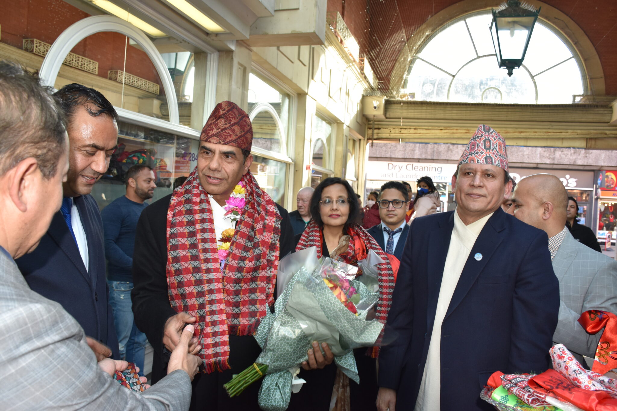 लण्डन । गैर आवासीय नेपाल संघ (एनआरएन) बेलायतले नवनियुक्त नेपाली राजदुत ज्ञानचन्द्र आचार्यको स्वागत तथा अभिनन्दन कार्यक्रम भव्य रुपमा सम्पन्न गरेको छ । बेलायतका लागि नेपालको २२ औँ राजदुतको रुपमा कार्यभार सम्हालेका आचार्यलाई एनआरएन युकेले अल्डरसटस्थित आफ्नै कार्यालयमा स्वागत पश्चात बाजागाजा सहित कार्यक्रम स्थल एम्पायर हलमा लगिएको थियो ।