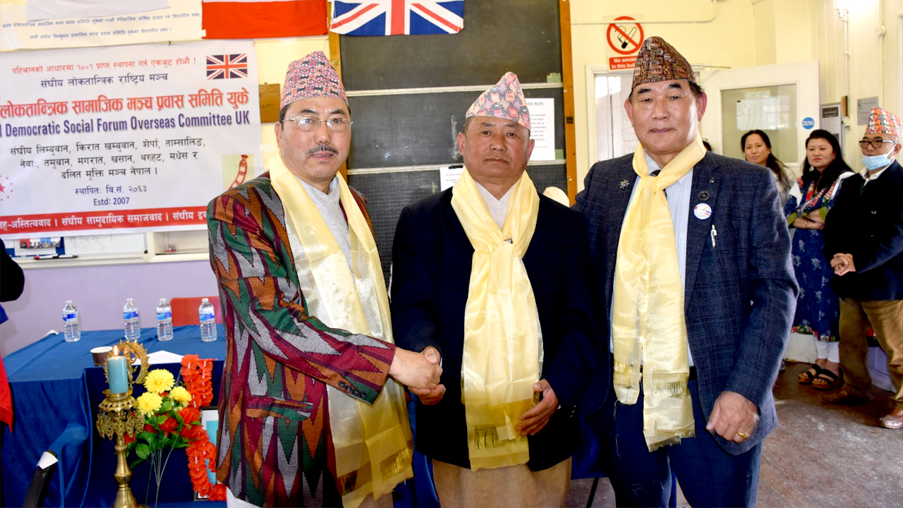 त्यस्तै संघीय लोकतान्त्रिक सामाजिक मञ्च यूके र संघीय लिम्बुवान सामाजिक मञ्च यूकेको संयुक्त पहलकदमीमा यूकेमा गठन हुन बाँकी रहेका सामाजिक मञ्चहरुको गठनलाई सशक्तरुपमा अगाडि बढाउने र संघीय लोकतान्त्रिक राष्ट्रिय मञ्च नेपालको चैत्र ८ गते सम्पन्न भएको पदाधिकारीको बैठकले पारित गरेको सेरिल नम्बर २ को निणर्यमा विधान, विनियम र प्रक्रिया बिपरित गठन गरिएको कथित सर्मिला यक्सो अध्यक्ष रहेको भनिएको संघीय लोकतान्त्रिक सामाजिक मञ्चयुके समितिलाई मान्यता प्रदान गरिएको लज्जास्पद निणर्य भन्दै संयुक्त विस्तारित बैठकले घोर आपत्ति समेत प्रकट गरेको छ ।