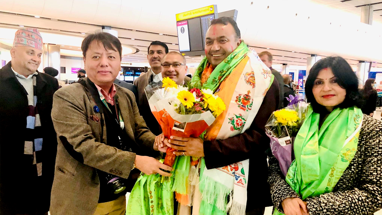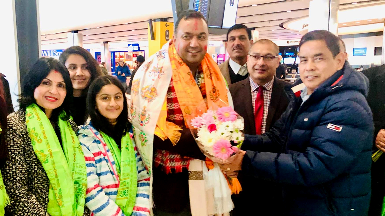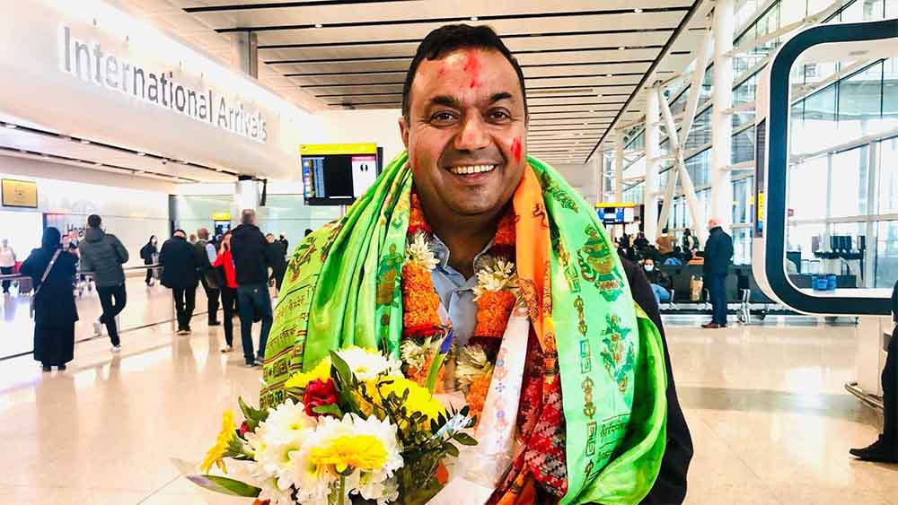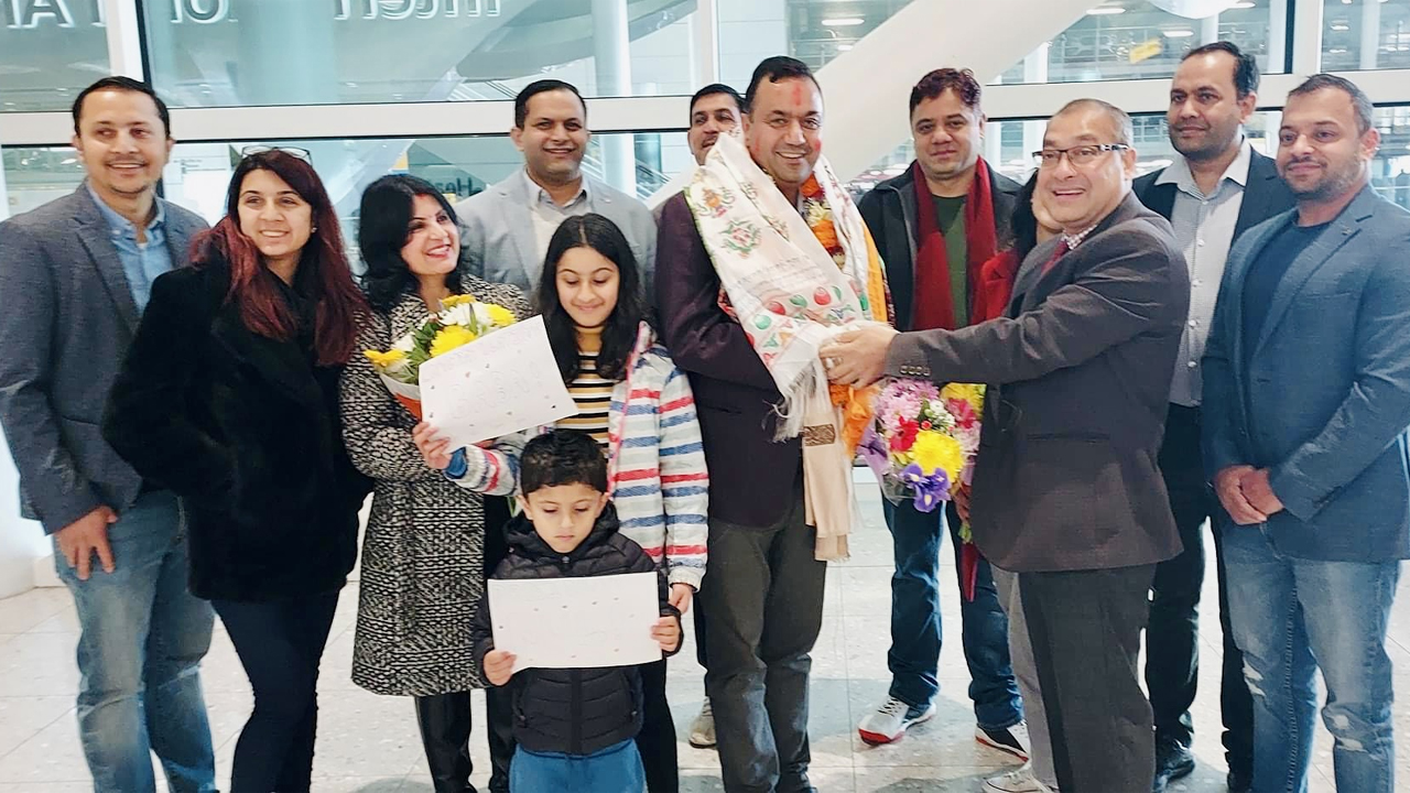 लण्डन हिथ्रो विमानस्थलमा बुधबार उनलाई परिवार र एनआरएनएका पदाधिकारी एवम् अन्य स्थानीय समुदायका व्यक्तिहरुले स्वागत गरेका थिए ।