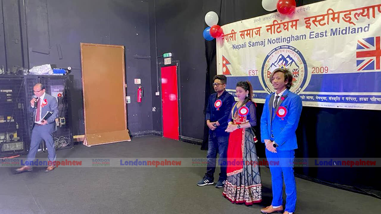 लण्डन । नेपाली समाज नटिङ्घमले चर्चित नेपाली कलाकारहरुको साथमा भव्य साँस्कृतिक कार्यक्रम सम्पन्न गरेको छ । सोमवार समाजले नटिङ्घममा बेलायतको साँगितिक यात्रामा निस्केका चर्चित लोकदोहोरी गायिका अस्मिता डल्लाकोटी,गायक विशाल रायमाझी, रेशम निर्दोष लगायतको उपस्थितिमा कार्यक्रम सम्पन्न गरेको हो ।