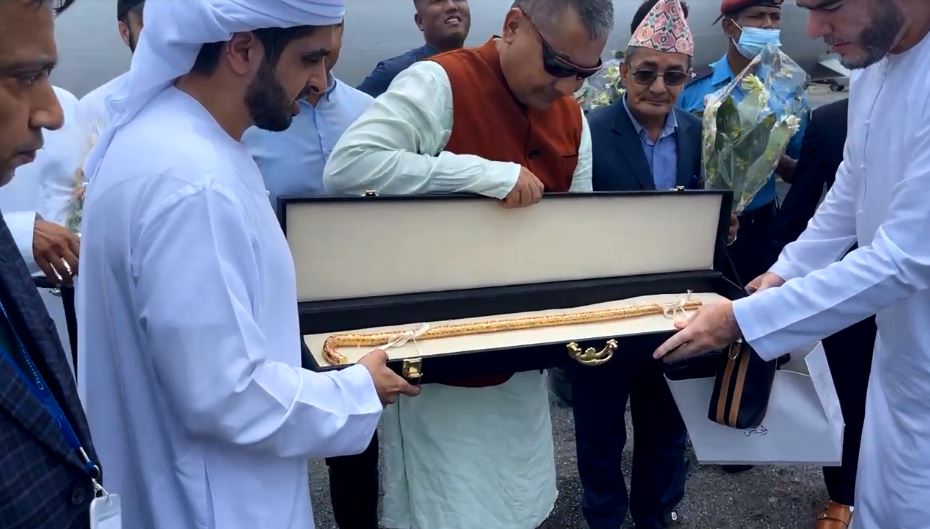 काठमाडौं । बीएण्डसी मेडिकल कलेजका सञ्चालक दुर्गा प्रसाईंलाई दुबईका राजकुमार जुमा आल मोक्तुमले लौरो उपहार दिएका छन् ।