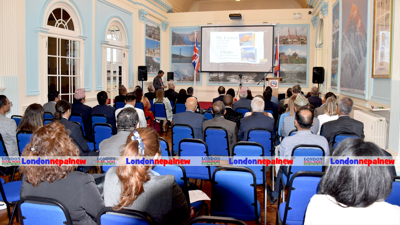 नेपालको अर्थतन्त्र उकास्न पर्यटनका सम्भावनाबारे दूतावासमा मंगलबार सांझ आयोजित कार्यक्रममा राजदूत ज्ञानचन्द्र आचार्यले नेपालको प्राकृतिक सौन्दर्य वर्णन गर्दै नेपाल विदेशी पर्यटक स्वागत गर्न आतुर रहेको जनाए । राजदूत आचार्यले कोभिड महामारीपछि नेपालको पर्यटन पुनर्जिवित हुने चरणमा रहेको उल्लेख गर्दै बेलायती पर्यटकलाई नेपाल भ्रमणको निम्तो दिए ।‘भर्चुअल’ रुपमा काठमाडौंबाट जोडिएका नेपाल पर्यटन बोर्डका अफिसिएटिङ डिरेक्टर लक्ष्मण गौतमले स्लाइड शोमार्फत नेपालका विशेषता औंल्याए । नेपालको भौगोलिक अवस्था चित्रणदेखि नेपालीको अतिथी सत्कार, संस्कृति, पर्यटकका प्रमुख आकर्षण, नेपालमा उपलब्ध सेवा सुविधा आदिबारे चर्चा गर्दै गौतमले नेपाल भ्रमण गर्ने बेलायतीको संख्या अन्य देशको तुलनामा अग्रपंक्तिमा रहेको पनि बताए ।भर्चुअल रुपमै सहभागी अर्का वक्ता नेपाल एसोसिएसन अफ टुर्स एण्ड ट्राभल एजेण्ट्स (नाटा) का अध्यक्ष रमेश थापाले नेपालको पर्यटकीय आकर्षणबारे अवगत गराउंदै नेपाल पर्यटकका लागि विश्वमै उत्कृष्ट गन्तव्य रहेको बताए । उक्त कार्यक्रममा बीबीसी मास्टर सेफ द प्रोफेशनल्सका फाइनलिष्ट सेफ सन्तोष शाहले नेपाली खाना विश्वमा परिचित गराउन आफू लागिरहेको जनाउंदै नेपाल जस्तो उत्कृष्ट गन्तव्य र खानाका परिकार अन्यत्र नभएको धारणा राखे ।दूतावासकी उपनियोग प्रमुख रोशन खनालले सञ्चालन गरेको उक्त कार्यक्रममा बेलायतका लागि नेपाल पर्यटन बोर्डका मानार्थ दूत महन्त श्रेष्ठ, लेखक तथा पत्रकार जो बाइन्डलस, ट्राभल कन्सोलका सञ्चालक बिराज भट्ट, एओल एड्भेन्चरका अपरेसन्स् म्यानेजर ड्यान राइट लगायतले नेपालको पर्यटन विशेषता औंल्याउंदै नेपाल भ्रमण गर्न बेलायतीलाई प्रेरित गरेका थिए ।कार्यक्रममा सेफ सन्तोष शाह, कोभिड महामारीका बेला अंग्रपंक्तिमा खटिएका स्वयंसेवक र स्वास्थ्यकर्मीहरुलाई एक लाख बक्स खाना निशुल्क बांड्ने सुजन कटवाल र एभरेष्ट इनका सेफ शंकर पाण्डेलाई दूतावासका तर्फबाट सम्मान गरिएको थियो ।ट्राभल एण्ड टुर्स अपरेटर, ट्राभल राइटर, ट्राभल व्यवसायी, सञ्चारकर्मी लगायत बेलायती तथा नेपाली सहभागी उक्त कार्यक्रममा सयपत्री कल्चरल ग्रुप आवद्ध किशोरीहरुले मौलिक नेपाली नाच प्रस्तुत गरेका थिए भने सयपत्री अध्यक्ष डम्बरसिंह प्रयासले सारंगीको धुन सुनाए।