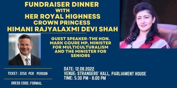 हिमानी कोष अष्ट्रेलियाको निमन्त्रणामा पूर्व युवराज्ञी हिमानी राज्यलक्ष्मी देवी शाह, पूर्व राजकुमारी शीतश्मा राज्यलक्ष्मी देवी शाह र पूर्व राजकुमारी डिलाशा राज्यलक्ष्मी देवी राणा अष्ट्रेलिया आउने छन् ।
