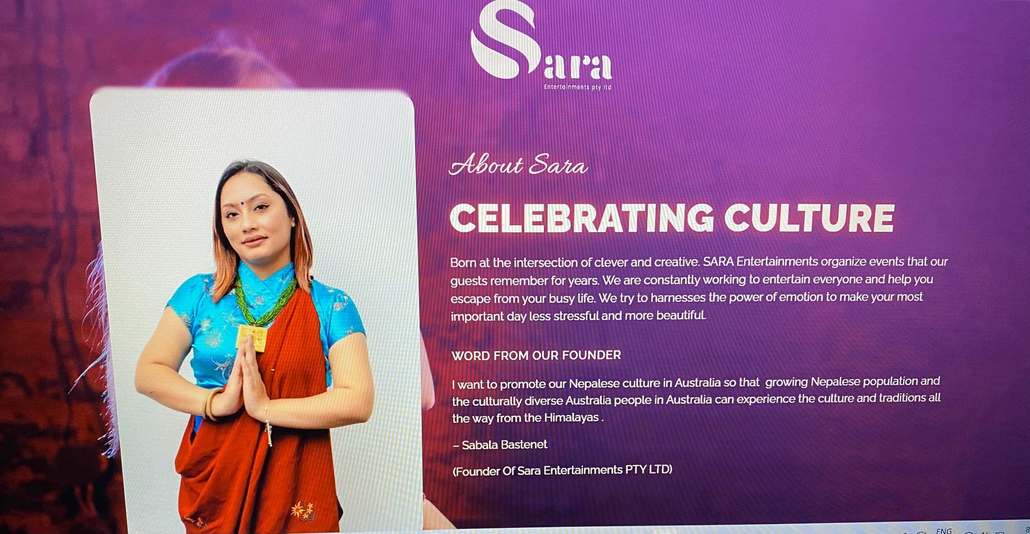 अगष्ट १४ तारिख आईतबार दिउँसो ३ बजेदेखि न्यू साउथ वेल्स स्थित हिमालय प्यालेसमा कार्यक्रम हुने भएको छ । कार्यक्रममा नेपाली चर्चित कलाकारहरुको सागींतिक प्रस्तुतीसगैं अन्य विविध मनोरञ्जनात्मक कार्यक्रम आयोजना गरिएको सारा ईभेन्ट्सकी संस्थापक सबला बस्नेतले जानकारी दिईन् ।