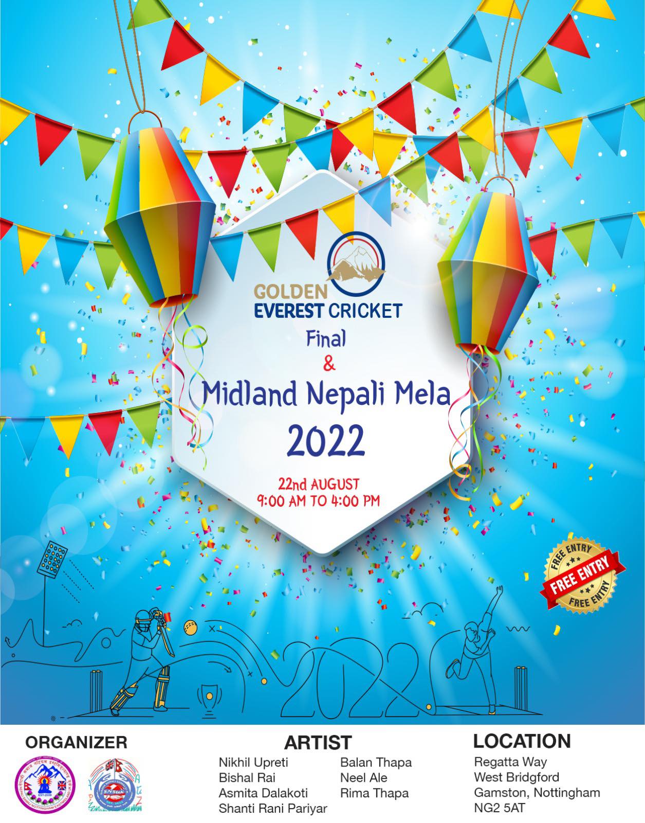 फाईनल एवम् समापन समारोहमा बेलायतका लागि नेपाली राजदुत महामहिम ज्ञानचन्द्र आचार्यले प्रमुख अतिथिको रुपमा सहभागी हुने भएका छन् । उक्त अवसरमा साझा नेपाली समाज बेलायतले मिडललेन्ड मेलाको आयोजना गर्ने भएको छ ।