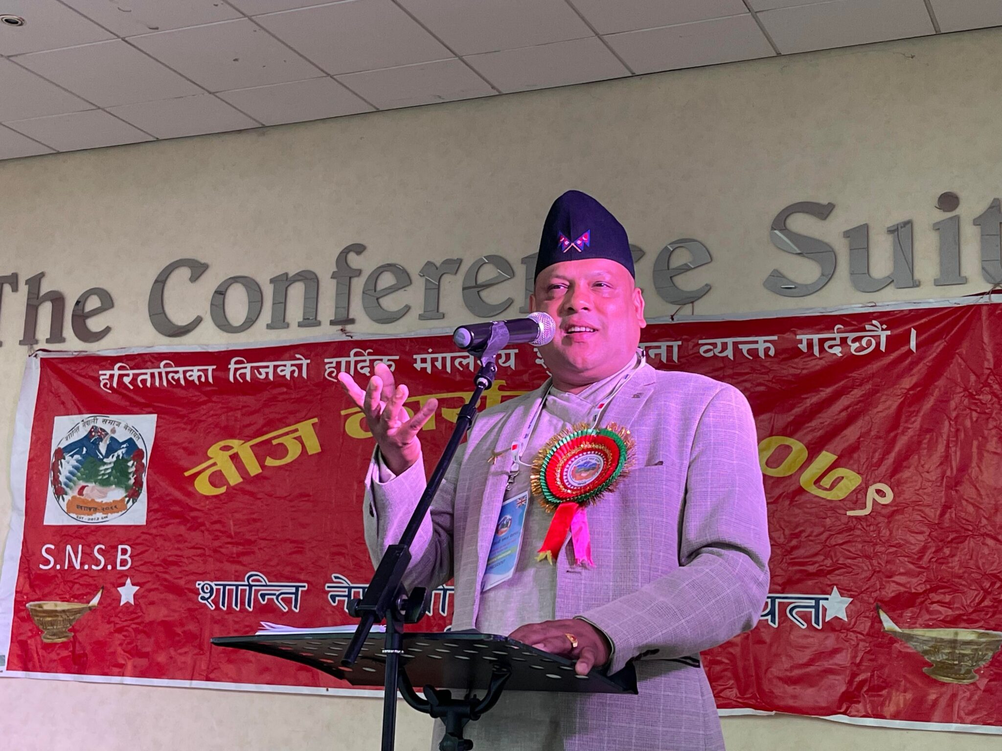 हिन्दु नारीहरुको महान पर्व हरितालका तीजको अवसर पारेर शान्ति नेपाली समाज बेलायतको आयोजनामा अगष्ट २२ तारिख सोमबार बर्मिङहमको वेष्ट ब्रमिचस्थित ‘कन्फरेन्स सुइट’ मा संस्थाका अध्यक्ष भोजराज भण्डारीको अध्यक्षतामा नेपालबाट आएका राष्ट्रिय कलाकारको सागींतिक प्रस्तुतिका बीच तिज बिशेष कार्यक्रम सम्पन्न भएको हो ।