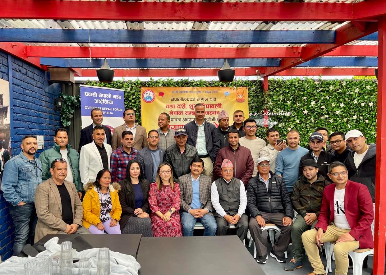 सिड्नी । प्रवासी नेपाली मञ्च (ओएनएफ) न्यु साउथ वेल्स राज्य समितिले हिन्दुहरुको पारिवारिक मिलनको पर्व विजया दशमी, शुभदिपावली,छठ तथा नेपाल सवंत् ११४२ को पूर्व सन्ध्यामा शुभकामना आदान प्रदान कार्यक्रम सम्पन्न गरेको छ ।