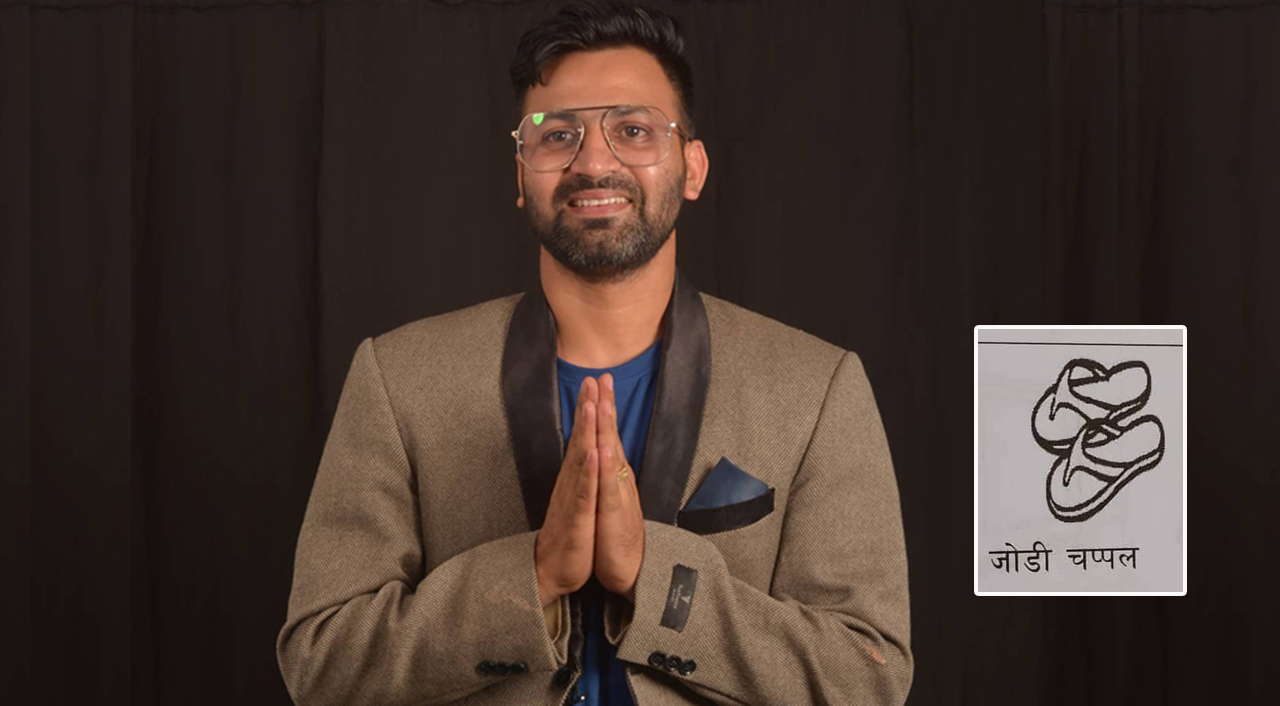 काठमाडौं-५ का स्वतन्त्र उम्मेदवार विजय कँडेलले पाए चप्पल चुनाव चिन्ह