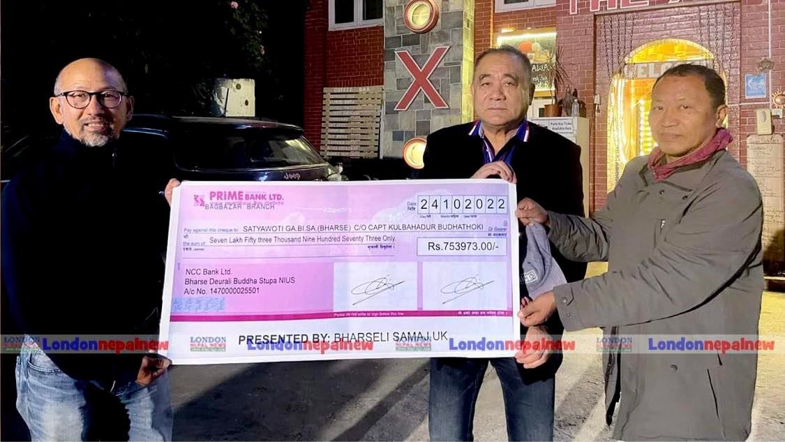 यसैबीच बेलायतमा रहेका गुल्मेली र भार्सेलीहरुको संस्थाबाट पनि स्तूपा निर्माणका लागि १४ लाख २४ हजार ६ सय ६३ रुपैयाँ सहयोग गरेको छ । गुल्मी जिल्ला समाज युकेले ६ लाख ७० हजार ६ सय ९० रुपैयाँ र भार्सेली समाज युकेले ७ लाख ५३ हजार ९ सय ७३ रुपैयाँ गरी जम्मा १४ लाख २४ हज़ार ६ सय ६३ रुपैयाँ काठमाण्डौमा एक कार्यक्रमकाबीच हस्तान्तरण गरिएको छ । काठमाण्डौ महाराजगंज स्थित एक होटेलमा स्तूपाका योजनाकार अभियानकर्ता एवम् भार्से विकासका अभियान्ता क्याप्टेन कुल बहादुर बुढाथोकी मगर तथा कृषि विज्ञ बोम बहादुर श्रीष मगरलाई गुल्मी जिल्ला समाज युकेका सल्लाहकार एवम् भार्सेली समाज युकेका आजिवन सदस्य मेजर खिम गौचन र समाजका पूर्व महासचिव एवम् बेलायतमा बसेर लामो समयदेखि पत्रकारिता गर्दै आएका लण्डन नेपाल न्यूजका प्रधान सम्पादक शिव भण्डारीले सयुंक्त रुपमा २ वटा चेक हस्तान्तरण गरेका हुन् ।