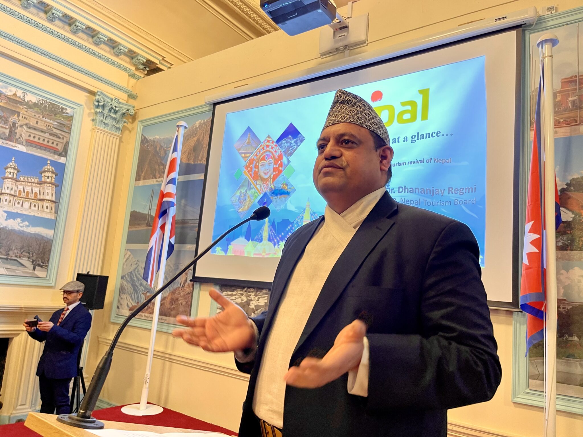 नेपाल पर्यटन बोर्डका सिइओ डा धनञ्जय रेग्मीले कोभिड महामारीपछिको विषम परिस्थितिमा पनि बेलायतबाट उल्लेखनीय पर्यटकहरु नेपाल गइरहेकोमा प्रसन्नता व्यक्त गरे।
