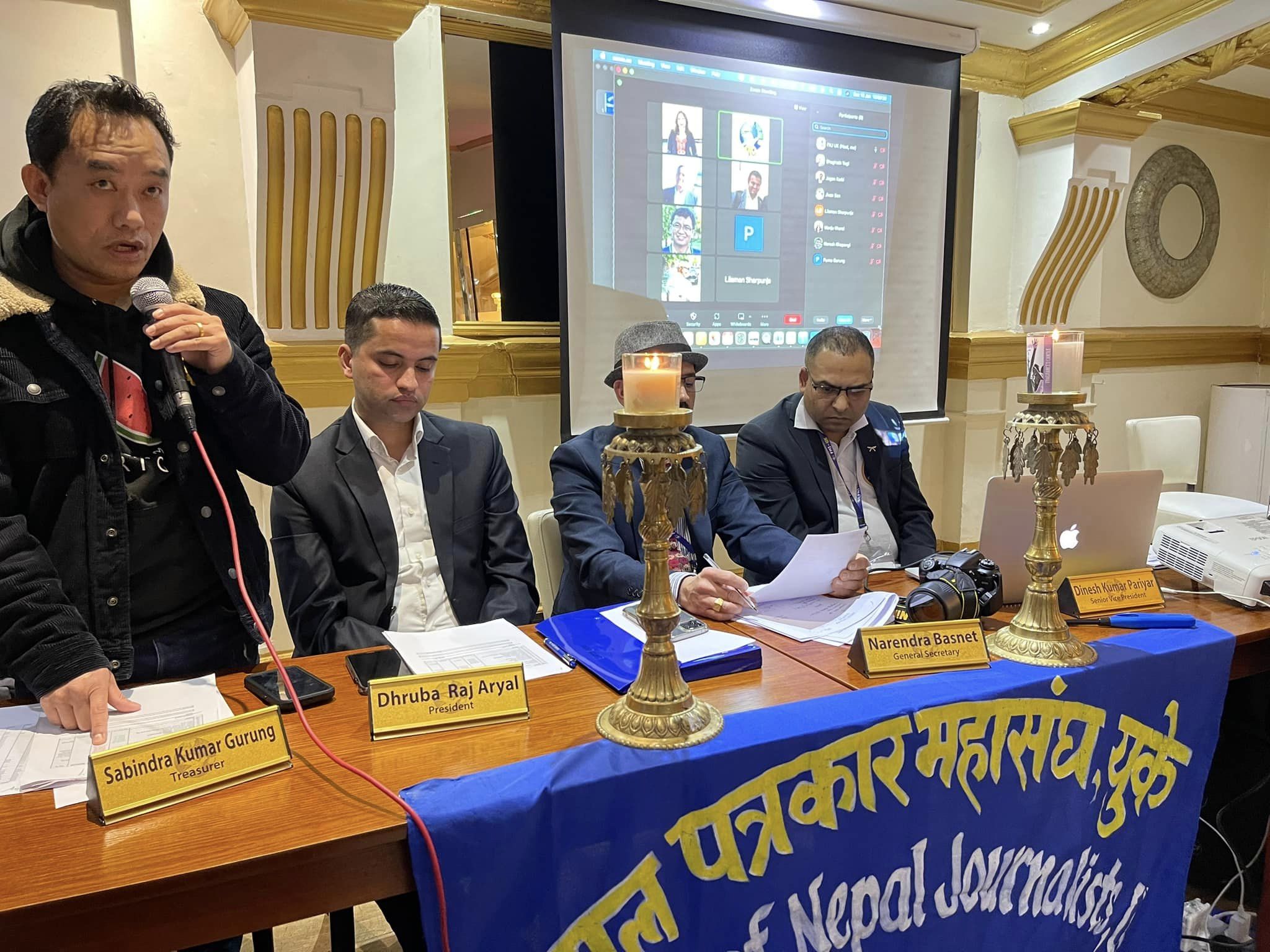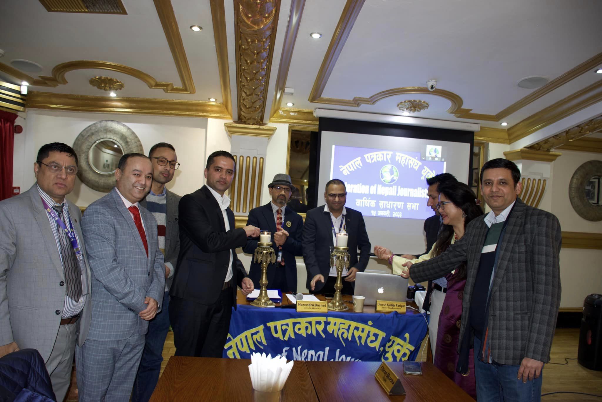 शिब भण्डारी लण्डन ।। नेपाल पत्रकार महासंघ युकेको बार्षिक साधारण सभा बेलायतको अल्डर्सटस्थित द प्यालेस रेस्टुरेन्टमा सम्पन्न भएको छ। बार्षिक साधारण सभामा उपस्थित हुन नसकेका सदस्यहरु जुममार्फत जोडिएका थिए। बार्षिक साधारण सभाको पहिलो चरणमा नेपाल पत्रकार महासंघ युकेका अध्यक्ष ध्रुबराज अर्याल र उपस्थित संरक्षकहरुले दिप प्रज्वलन गर्दै नेपालको राष्ट्रिय गित बजाएर शुरुआत गरेका थिए ।