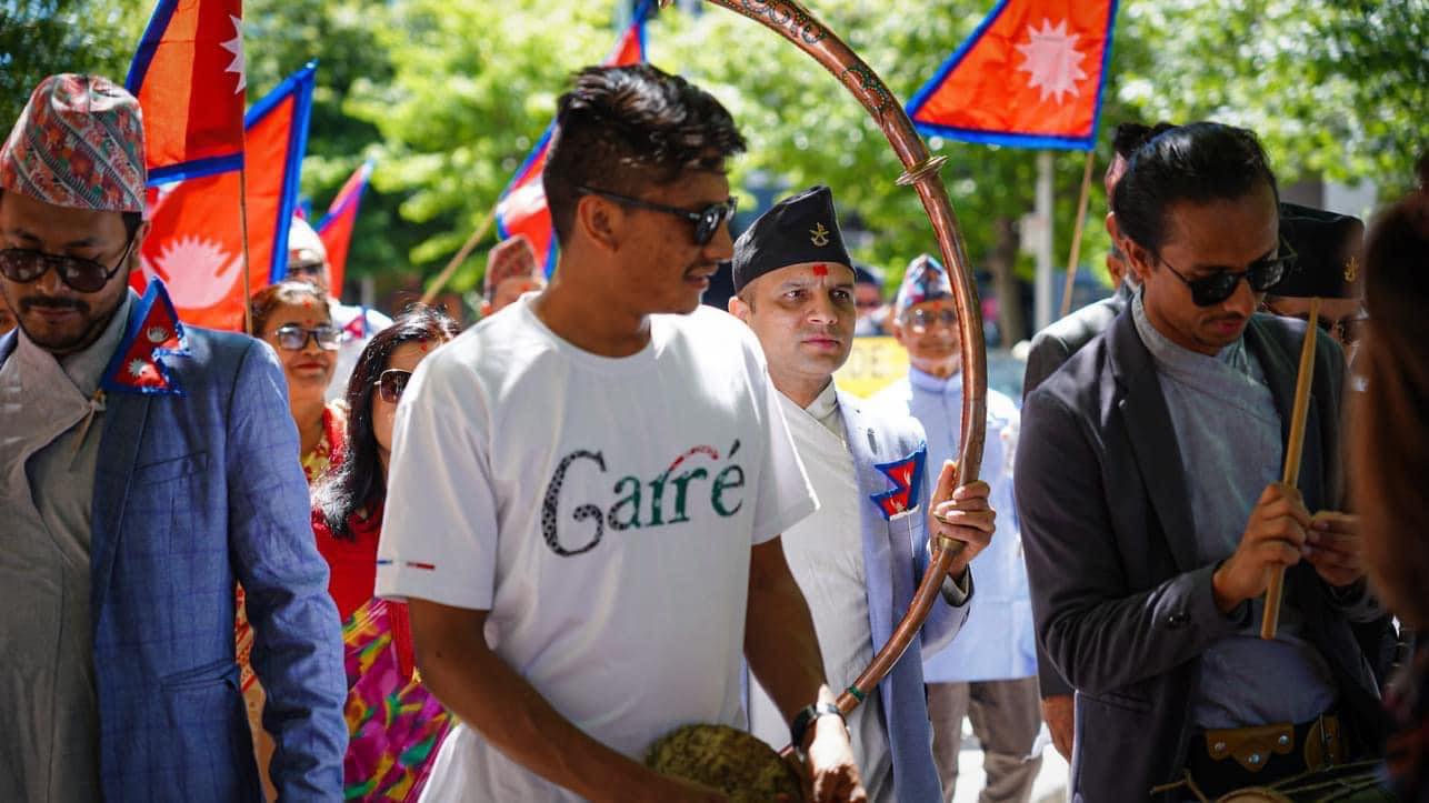 शनिवार गरिमा प्लेसबाट बिहान ११ः०० बजे सुरु भएको परेडमा नेपाली मौलिक भेषभुषामा सुसज्जित नेपालीहरुले नेपालको झण्डा बोकेर उपस्थित भएका थिए भने नेपाली पञ्चेबाजा, कुमारी रथ समेत समावेश गरिएको थियो