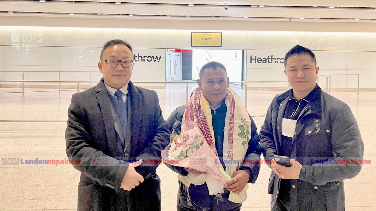 उनी हिथ्रो बिमानस्थलमा टर्मिनल २ मा मगंलबार बेलुका आइपुगेका हुन् । राईको स्वागतार्थ किरात राई यायोक्खा युकेका अध्यक्ष योगेश राई,तथा कपिल राई लगायत विमानस्थलमा पुगेका थिए ।