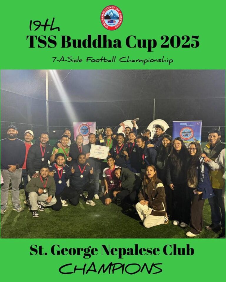 सिड्नी । अस्ट्रेलियामा जारी सेभेन साइड बुद्धकप फुटबल प्रतियोगीताको उपाधी सेन्ट जर्ज नेप्लिज क्लवले जितेको छ । तमु…